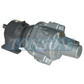 | FRENOS Para aplicaciones donde positivo de frenado es un requisito, una amplia gama de frenos de pinza que se ofrece. Estos estan disenados para soportar torque del motor a plena aire. El freno se compone de dos primavera zapatos aplica presionado contra un eje central. Los zapatos son liberados por la aplicacion de aire presion en el cilindro / piston. El par de frenado puede ser variada por el ajuste de dos reguladores de primavera, pero es normalmente de manera que un piloto de presion de 4 bares (60 psi) por completo lo dara a conocer. |